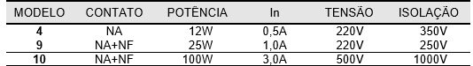 • Não é aconselhável a utilização dos dois contatos em circuitos de corrente contínua.