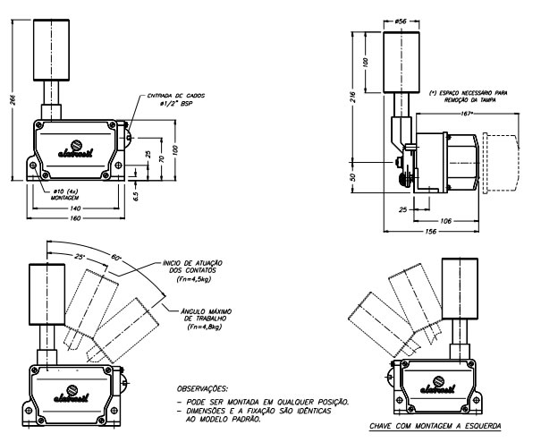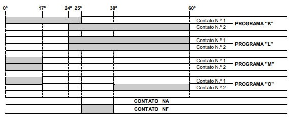 Os ângulos indicados, são referentes ao deslocamento da alavanca de acionamento, lembramos que neste modelo de chave a alavanca