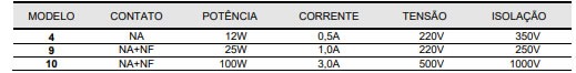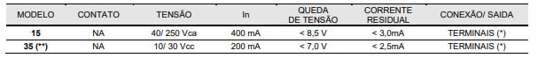 (*) Consultar nosso depto de vendas para sensores com saída a cabo e normalmente fechado.