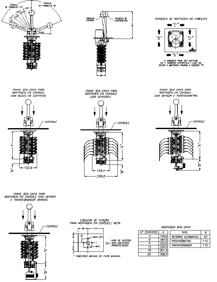 Consultar nosso Departamento Técnico para montagens com adaptações de outros equipamentos como selsyn; encoder absoluto; potenciômetros com outros valores; etc.