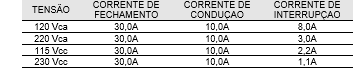 CONTATOS E CARACTERÍSTICAS ELÉTRICAS