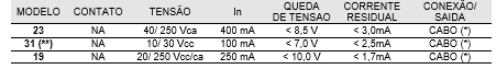 Para comando de acionamentos eletrônicos, a chave pode ser fornecida com as seguintes opções: