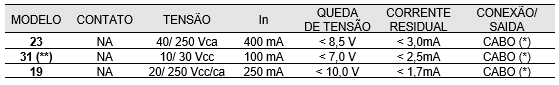 Para comando de acionamentos eletrônicos, a chave pode ser fornecida com as seguintes opções: