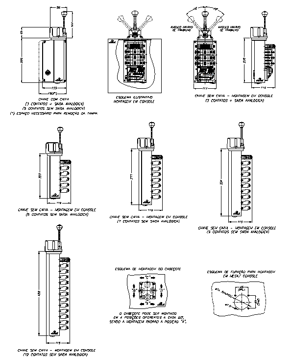 Possui até 05 posições da alavanca para cada lado mais o ponto zero, e até 09 contatos independentes, programados conforme desenho/esquema fornecido pelo cliente.