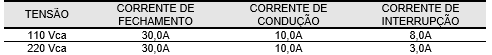 • Não é aconselhável a utilização dos dois contatos em circuitos de corrente contínua.