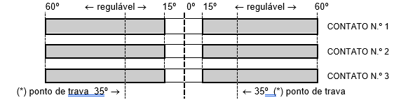 Este modelo de chave pode ter até 3 estágios de atuação dos contatos, sendo um contato por estágio com regulagem individual, o ajuste é executado através de parafuso na faixa de 15º à 60º, lembrando que o ponto de atuação da trava mecânica é a 35º.