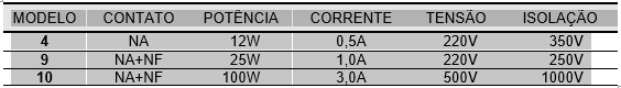 CONTATOS E CARACTERÍSTICAS ELÉTRICAS