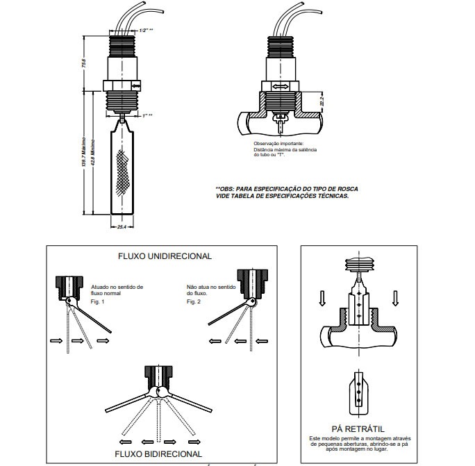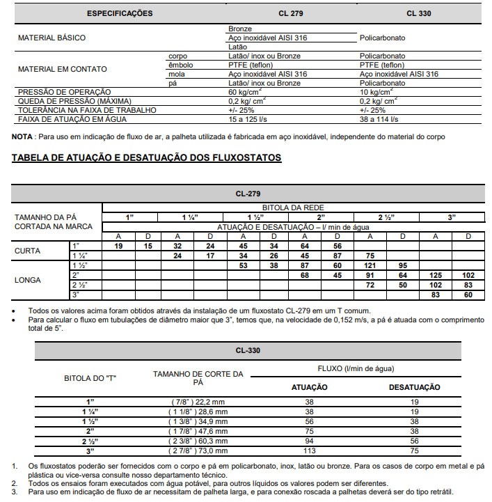 As “chaves de fluxo” ou “fluxostatos” do tipo pá, fabricadas pela Eletrosil, foram desenvolvidas