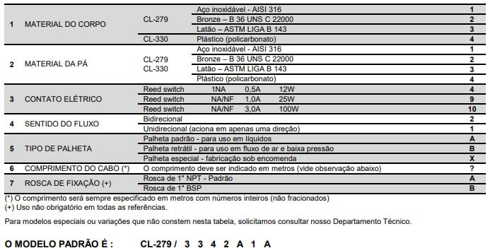 Chave CL-279 (metálica) -55ºC à 150ºC
