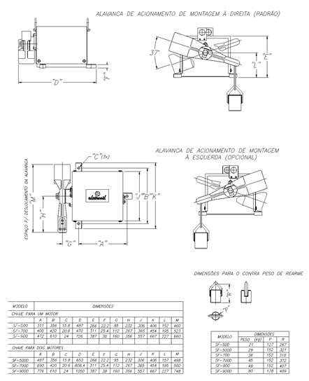 Chaves sem o contrapeso de rearme :  SF 500 =   60,0 kg                    SF 500D =   60,0 kg