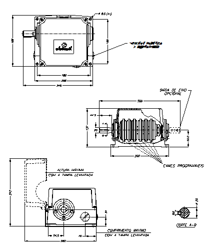 Para o fornecimento correto da chave, deverá ser fornecido o diagrama elétrico com os ângulos de abertura e fechamento ou o modelo dos cames (p/ sensor) conforme tabela em características dimensionais.