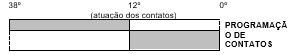 Os ângulos indicados no diagrama são referentes ao deslocamento do acionador:
