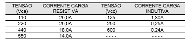 Pode ser fornecida com dois blocos de contatos independentes do tipo ponte com dupla ruptura, com pastilhas de AgCdO (prata + óxido de cádmio), acionados por cames de ação lenta, conforme características a seguir.