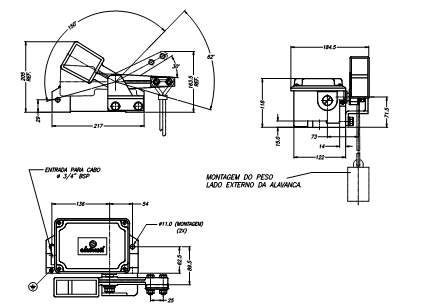 O peso total da chave é calculado somando-se o peso da chave utilizada com o do peso de rearme, deverá ser informado no pedido de compra o comprimento do cabo de aço necessário.
