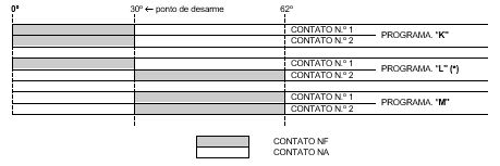 Os ângulos indicados no diagrama são referentes ao deslocamento da alavanca de acionamento, outras programações deverão ser consultadas.