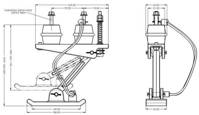 Estrutura fabricada em ferro fundido com pintura do tipo eletrostática á pó em poliéster na cor